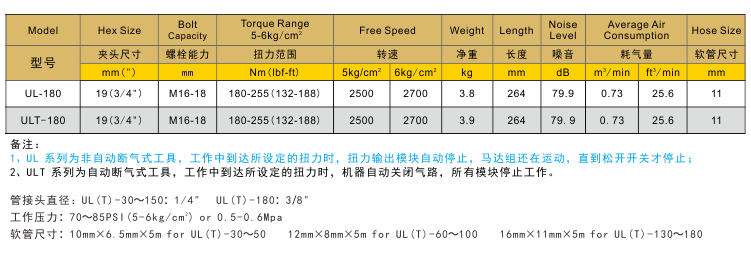除小功率機(jī)器外,正常氣動(dòng)工具使用時(shí)的穩(wěn)定工作氣壓為0.65Mpa,瞬時(shí)壓降應(yīng)不低于0.05Mpa;小功率機(jī)器除外,推薦使用內(nèi)徑8mm氣管,大功率氣動(dòng)扳手、風(fēng)炮、氣鏟、風(fēng)鎬等產(chǎn)品最少使用13mm內(nèi)徑氣管。