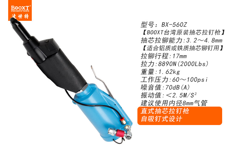 東莞市強(qiáng)勁五金工具有限公司提供臺(tái)灣BOOXT波世特品牌氣動(dòng)工具,直式氣動(dòng)拉釘槍BX-560Z廠家直銷(xiāo),首件享特價(jià)。咨詢熱線:4008301980