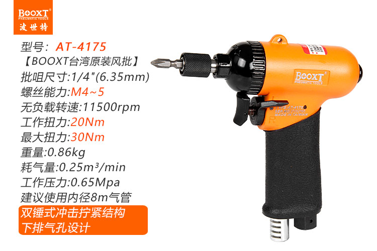 東莞市強勁五金工具有限公司提供臺灣BOOXT波世特品牌氣動工具,氣動螺絲刀AT-4175廠家直銷,首件享特價。咨詢熱線:4008301980