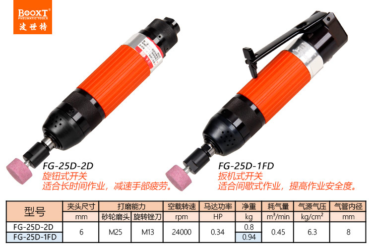 東莞市強(qiáng)勁五金工具有限公司提供臺(tái)灣BOOXT波世特品牌氣動(dòng)工具,氣動(dòng)風(fēng)磨FG-25D-1FD廠家直銷,首件享特價(jià)。咨詢熱線:4008301980