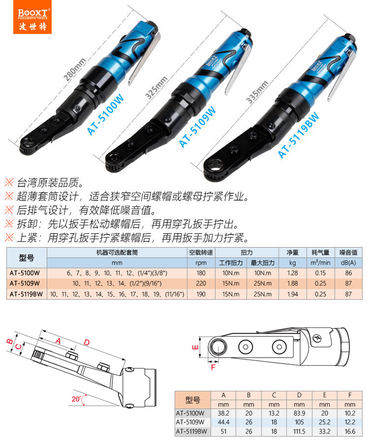 東莞市強(qiáng)勁五金工具有限公司提供臺(tái)灣BOOXT波世特品牌氣動(dòng)工具,中空氣動(dòng)扳手AT-5119BW廠家直銷,首件享特價(jià)。咨詢熱線:4008301980