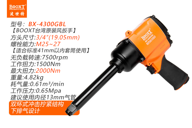 東莞市強(qiáng)勁五金工具有限公司提供臺灣BOOXT波世特品牌氣動(dòng)工具,加長軸氣動(dòng)扳手BX-4300GBL廠家直銷,首件享特價(jià)。咨詢熱線:4008301980