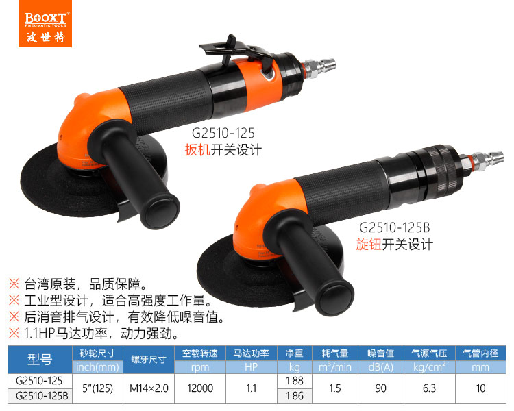 東莞市強(qiáng)勁五金工具有限公司提供臺(tái)灣BOOXT波世特品牌氣動(dòng)工具,工業(yè)級(jí)氣動(dòng)角磨機(jī)G2510-125B廠家直銷,首件享特價(jià)。咨詢熱線:4008301980