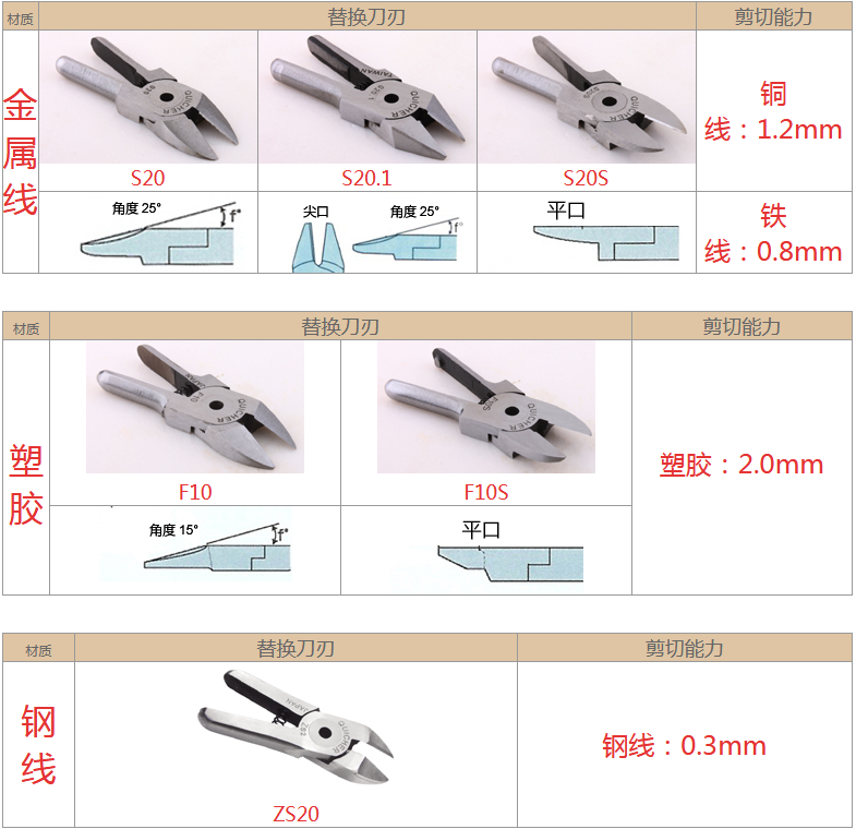 2.注意材質(zhì):材質(zhì)對(duì)選配刀刃非常重要,例如客戶要剪的銅鐵、材質(zhì)有鍍鈦、鍍烙、塑料材質(zhì)、加纖維超過20% 時(shí),一般刀刃不是剪不斷,就是使用壽命大大減少,塑料還容易在剪斷過程中碎裂。在這情形S刀刃應(yīng)選擇Z刀,塑料則建議使用電熱剪。